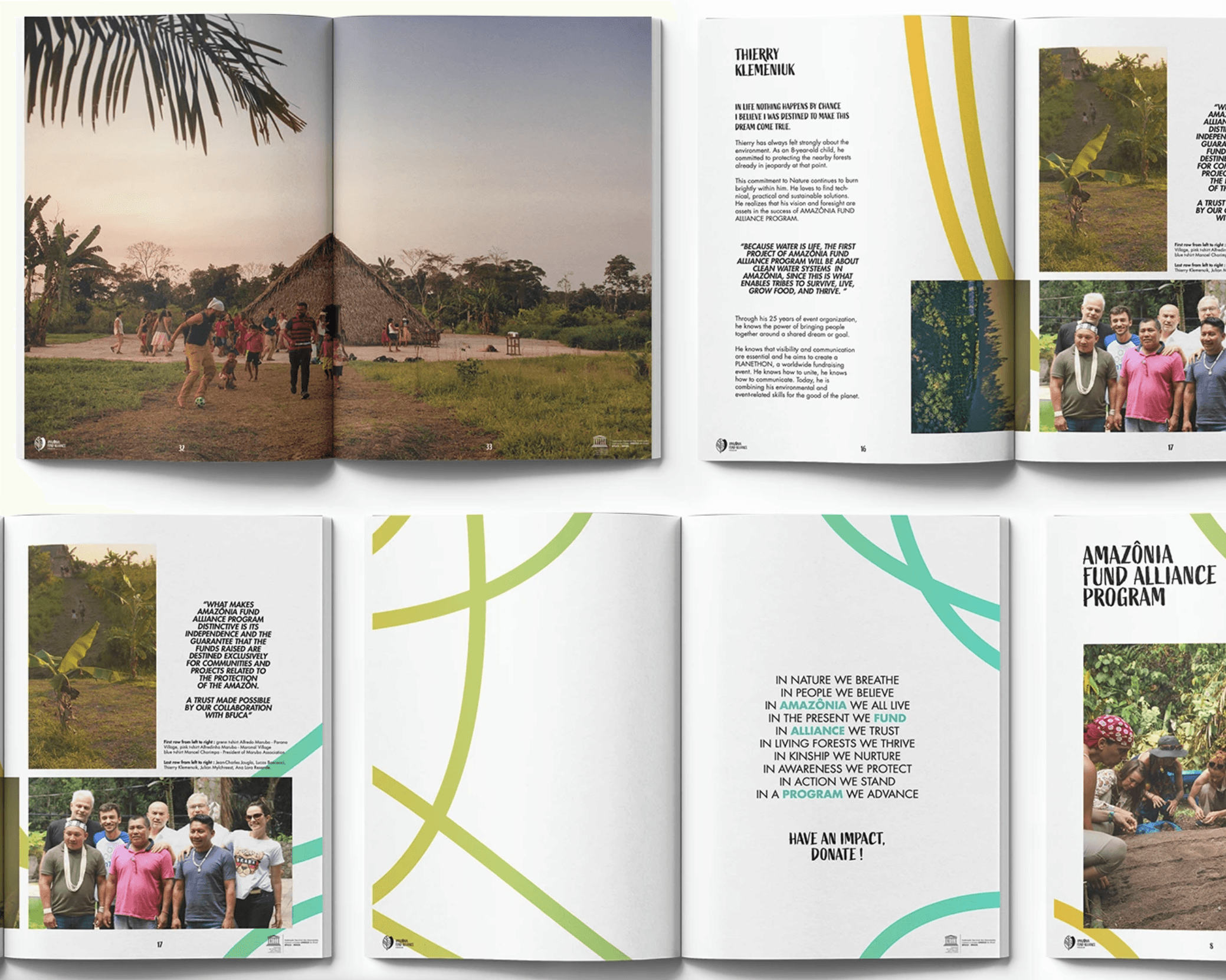 Spoa® a conçu l’intégralité de l’identité visuelle du programme et l’a déclinée sur une large gamme de supports print et institutionnels, pensés pour vivre lors de grands événements caritatifs internationaux, notamment au Festival de Cannes. L’identité a été adaptée pour des prises de parole soutenues par des personnalités engagées telles que Leonardo DiCaprio, Lily Gladstone, Fisher Stevens et Nadia Farès.