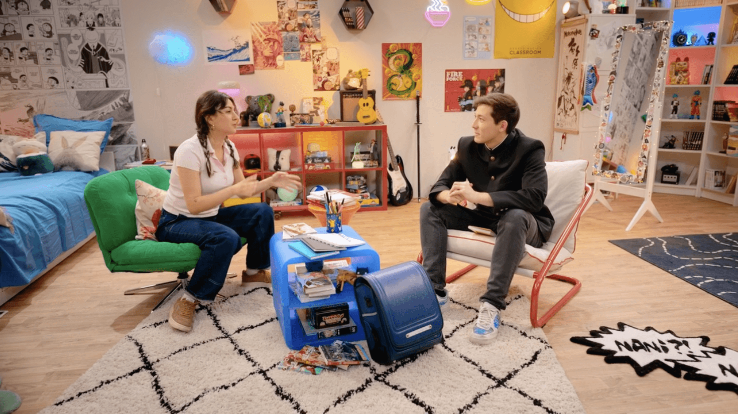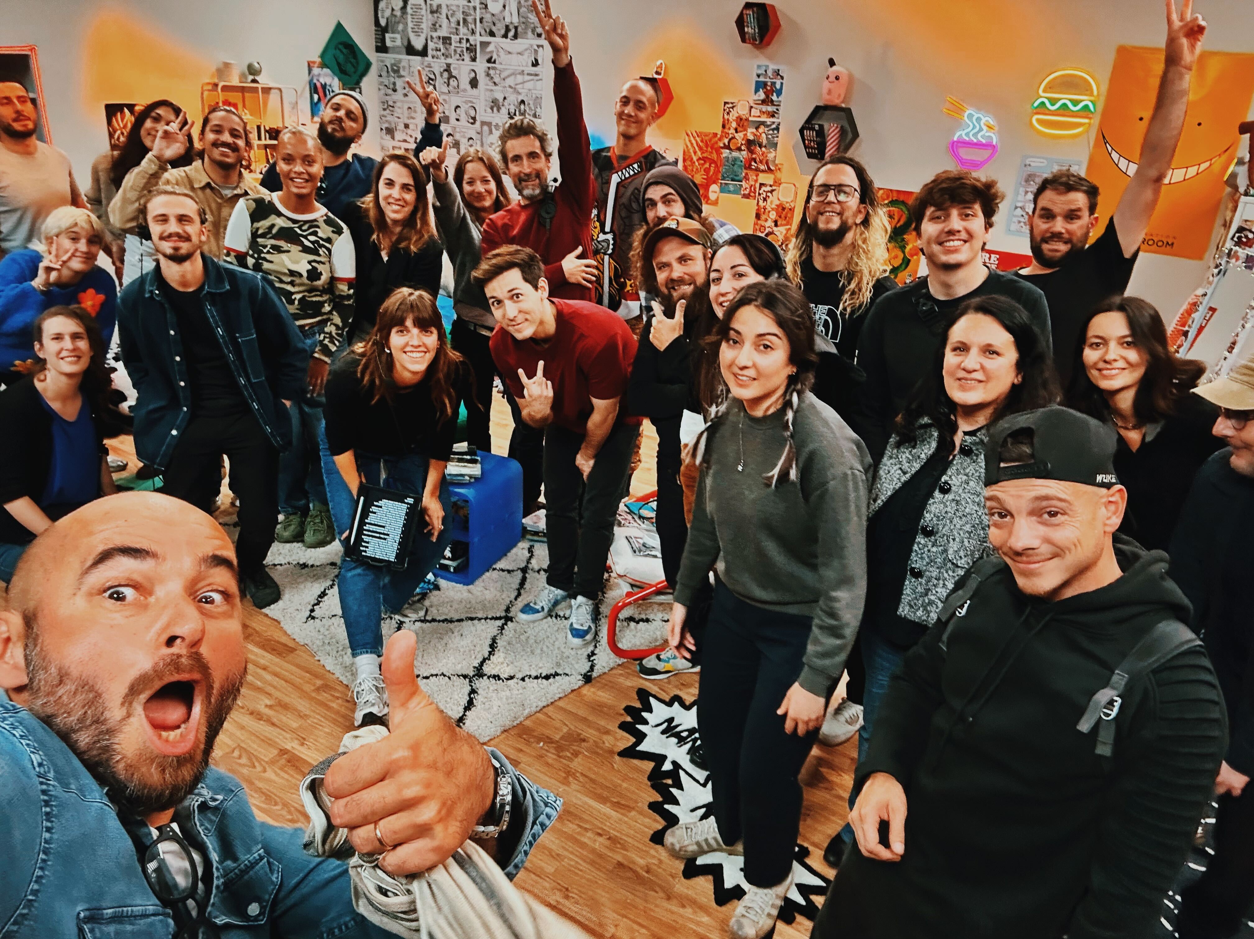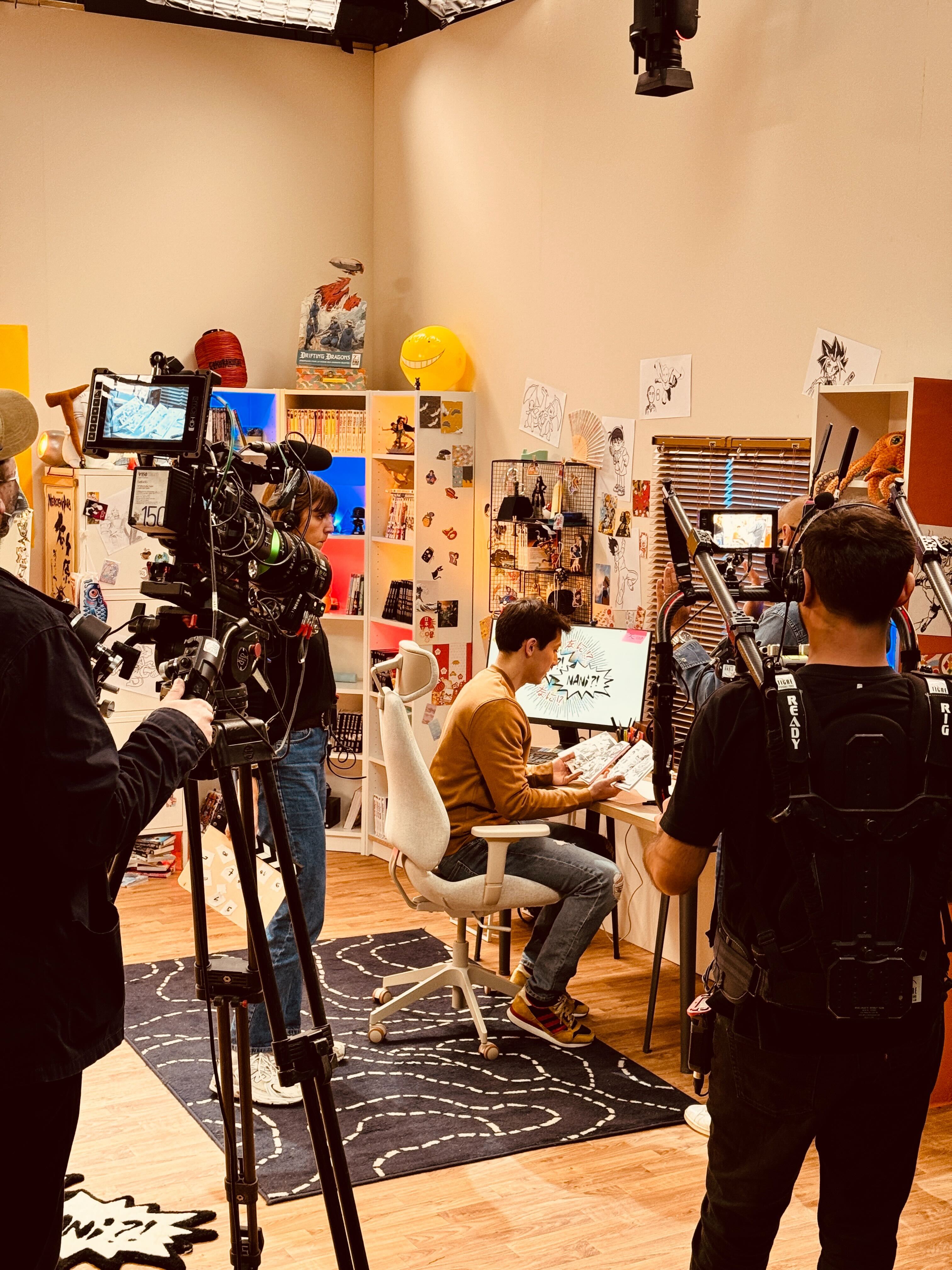 Spoa® a pris en charge l'intégralité du projet : concept, sujets, décors, magnétos, illustrations et post-production. Une approche fully integrated qui garantit une cohérence créative totale d'un épisode à l'autre. Pour mettre en images l'émission, Spoa® s'est entouré de Stéphane Bohée et Julien Faustino, réalisateurs aguerris, à qui l'on doit notamment Nouvelle École, Clique, Star Academy et des captations au Stade de France. La narration s'inspire directement des codes visuels des animés : effets audacieux, décor de sitcom, caméras en mouvement, habillage original. Un vrai parti pris esthétique, assumé de bout en bout.