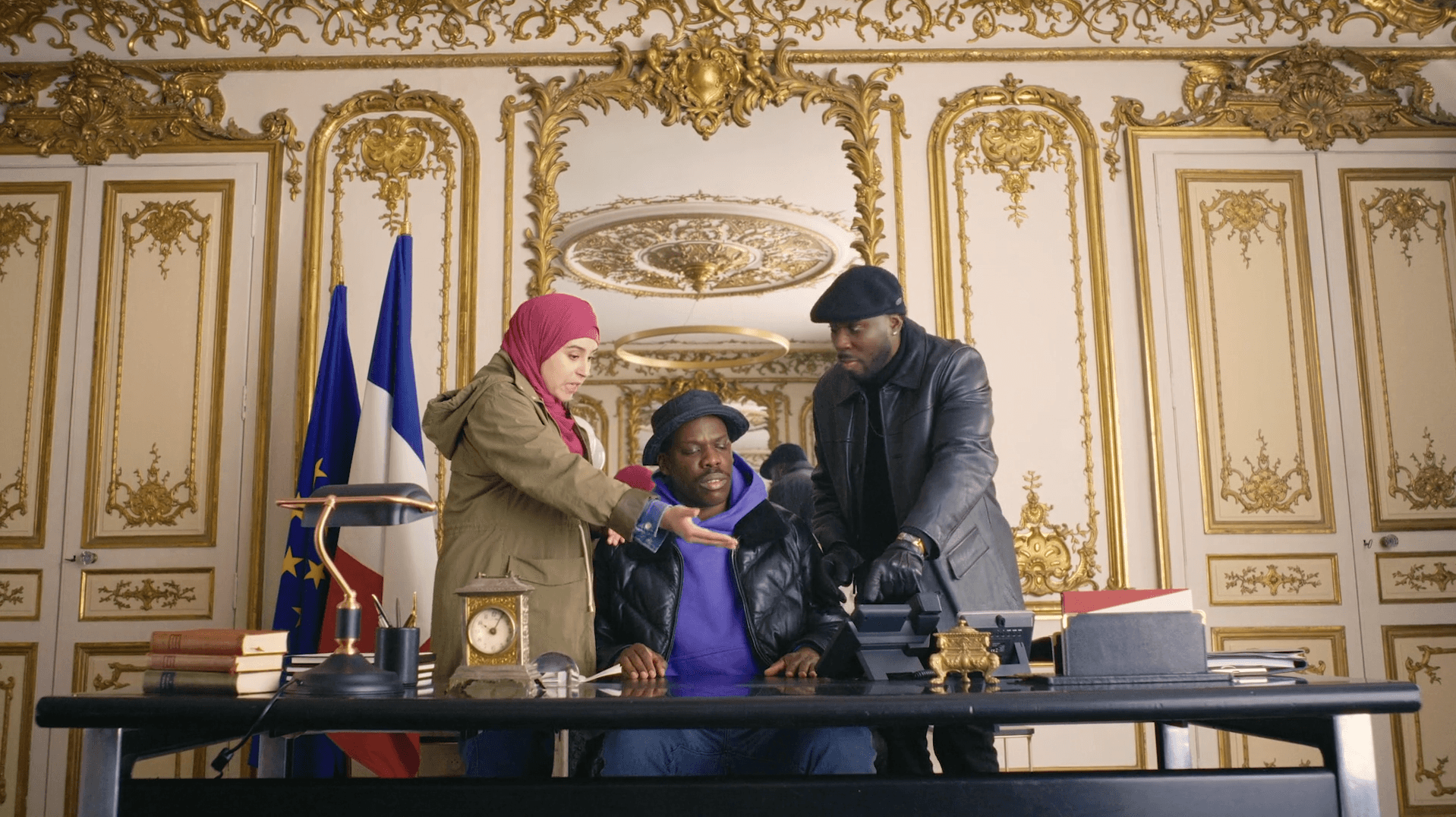 À la demande de Netflix, SPOA a imaginé et produit un teaser original pour annoncer la saison 2 de la série culte En Place de Jean-Pascal Zadi. L’idée ? Créer un « faux teaser » qui détourne les codes institutionnels pour mieux installer le ton satirique et l’univers de la série. Nous avons reconstitué le décors d’un bureau présidentiel plus vrai que nature, piloté un tournage en temps record, et orchestré une mise en scène truffée de clins d’œil jusqu’aux coups de fil de Barack Obama… Un défi de production relevé avec agilité, créativité et sens du rythme pour capter l’attention de la plateforme et des réseaux.