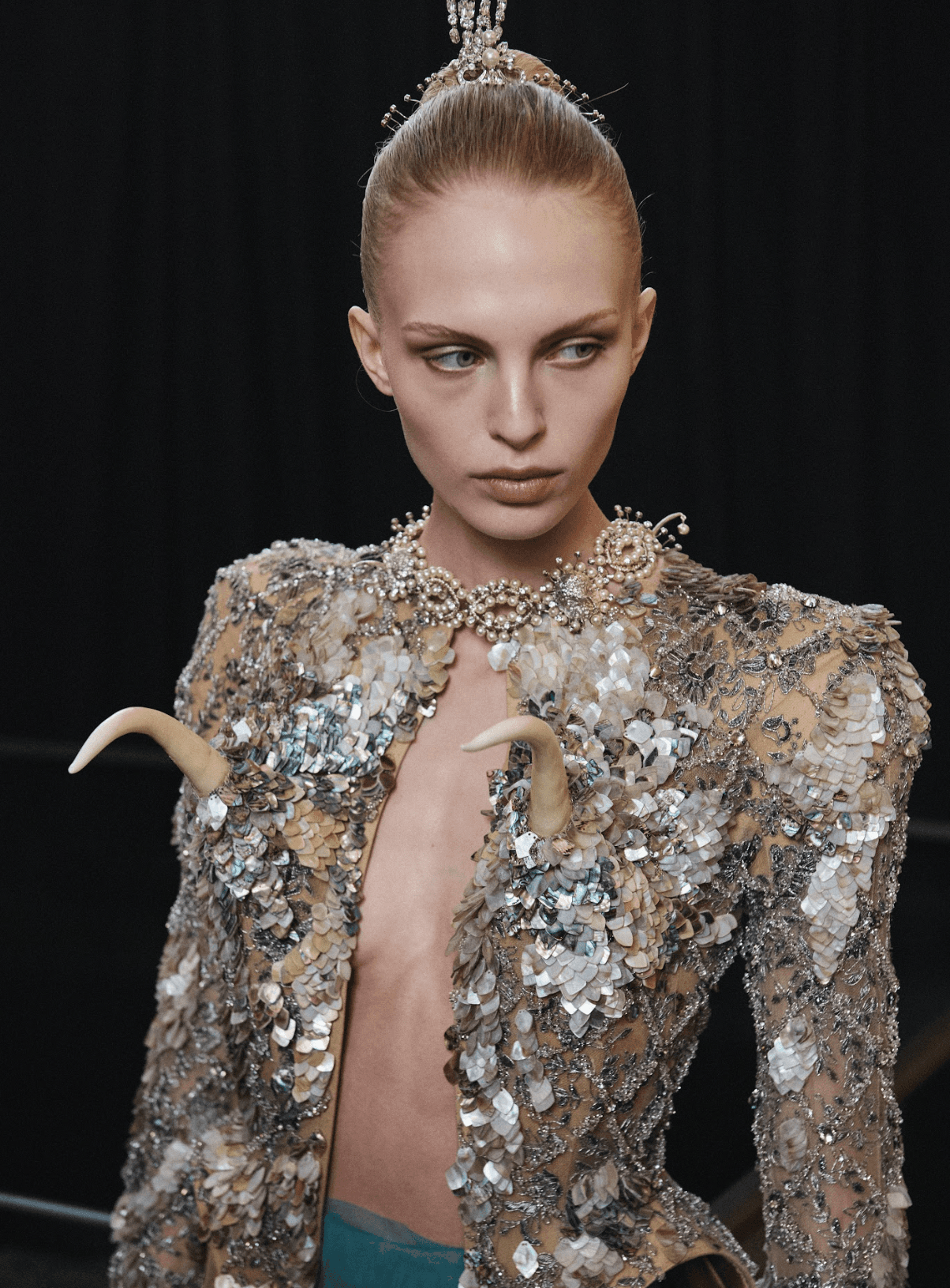 Avec le photographe Aliocha Wallon (déjà engagé avec Spoa® pour Saint Laurent), nous avons documenté les backstages du défilé couture à Paris à travers une série de portraits et de scènes de préparation. La présence de la modèle Alex Consani, avec laquelle Spoa® avait déjà collaboré sur une campagne couture Maison Margiela Fragrance, a renforcé le lien visuel entre les projets. L’œil singulier d’Aliocha, sensible au craft couture, aux textures et au mouvement des volumes, a permis de retranscrire une sensibilité couture et poétique, révélant les gestes, détails et tensions qui font la poésie d’un défilé d’exception.